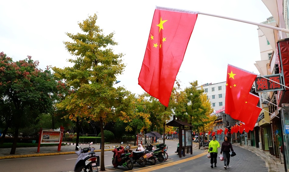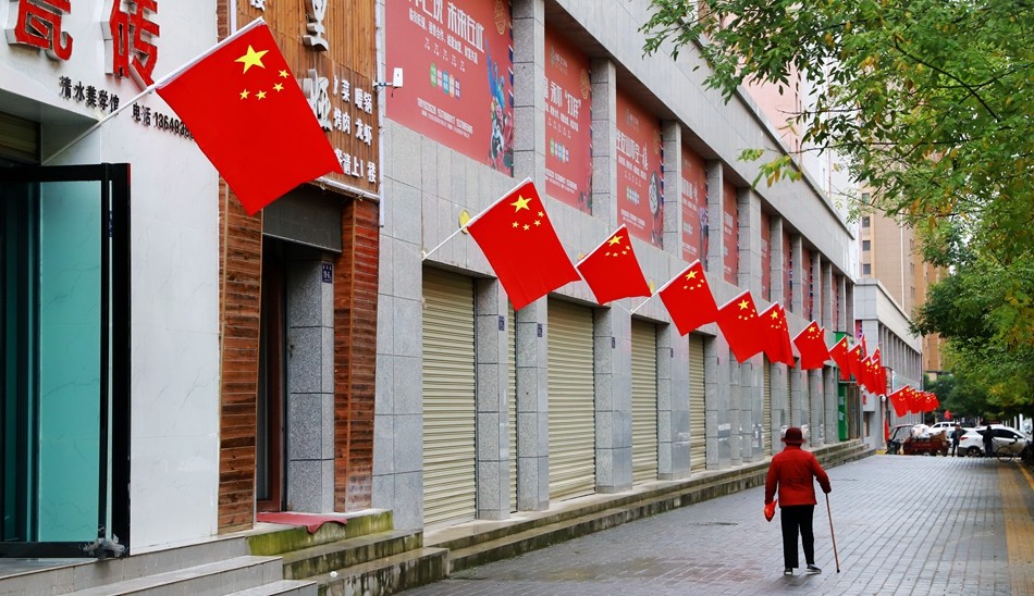 秋意濃,喜意更濃。在中華人民共和國71歲華誕之際,清水縣的節(jié)日氛圍非常的濃厚。走在大街小巷,各個店鋪門前、大大小小的五星紅旗迎風(fēng)飄揚,一面面鮮紅的國旗與青山綠水相映成趣,給節(jié)日的清水增添了“中國紅”的靚麗元素,也讓人們感受到了濃濃的愛國熱情。一面面鮮紅的五星紅旗就像一個個跳躍的音符,共同唱響時代的主旋律,也代表清水33萬兒女對祖國的真誠祝福。五星紅旗永遠(yuǎn)是我們心目中最驕傲的那抹紅!讓我們一起表白祖國,祝福祖國,祝愿我們的祖國越來越興旺,清水的明天越來越美好,人民的生活越來越殷實。