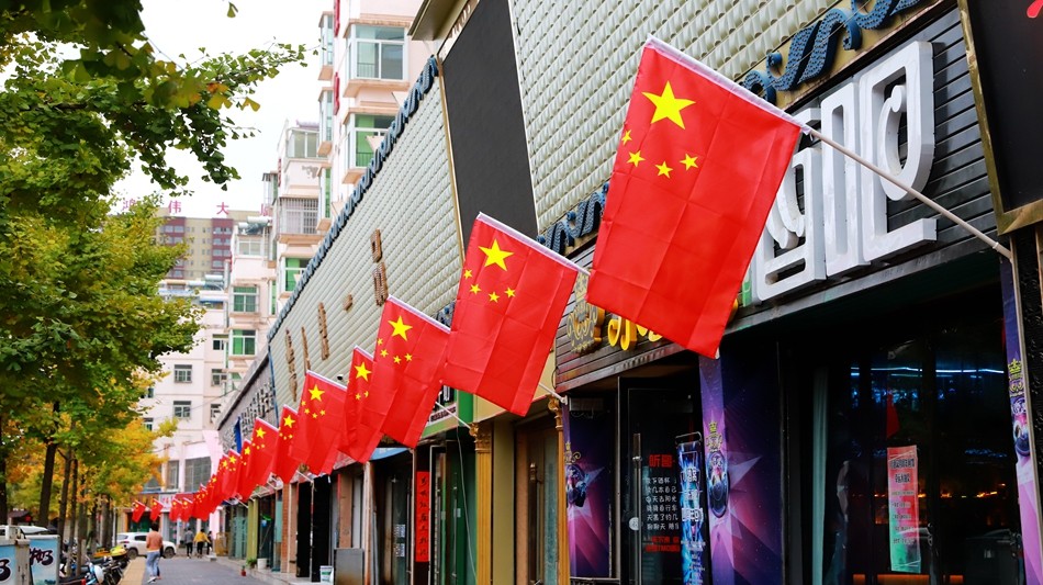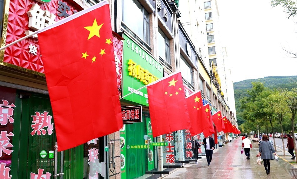 秋意濃,喜意更濃。在中華人民共和國71歲華誕之際,清水縣的節(jié)日氛圍非常的濃厚。走在縣城大街小巷和鄉(xiāng)鎮(zhèn),各個店鋪門前、大大小小的五星紅旗迎風飄揚,一面面鮮紅的國旗與青山綠水相映成趣,給節(jié)日的清水增添了“中國紅”的靚麗元素,也讓人們感受到了濃濃的愛國熱情。