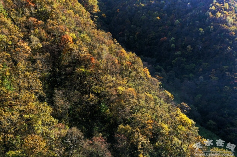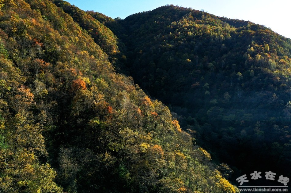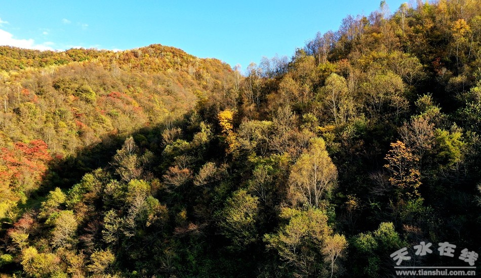 清水的秋天是一年中最美麗的季節(jié)。走進(jìn)山門、秦亭一帶,秋高氣爽,陽光燦爛。站在山坡上,抬頭仰望,是湛藍(lán)湛藍(lán)的天空;環(huán)顧四周,是峻俏秀氣的山巒;俯瞰腳下,是一望無垠的燦黃,令人視野開闊,心曠神怡。山坡上已經(jīng)枯萎變黃的野草,好似給山穿上一件金黃色外罩;山間的落葉松被季節(jié)暈染成紅黃相間的層次,如同一幅天然的畫布;一些不知名的樹葉充滿著激情和活力,火紅火紅的,好像要燃燒起來;小路旁盛開著的點(diǎn)點(diǎn)金色傲霜秋菊為山林增添了勃勃生機(jī)。這個(gè)季節(jié),千萬別錯(cuò)過大美清水無邊的秋色。