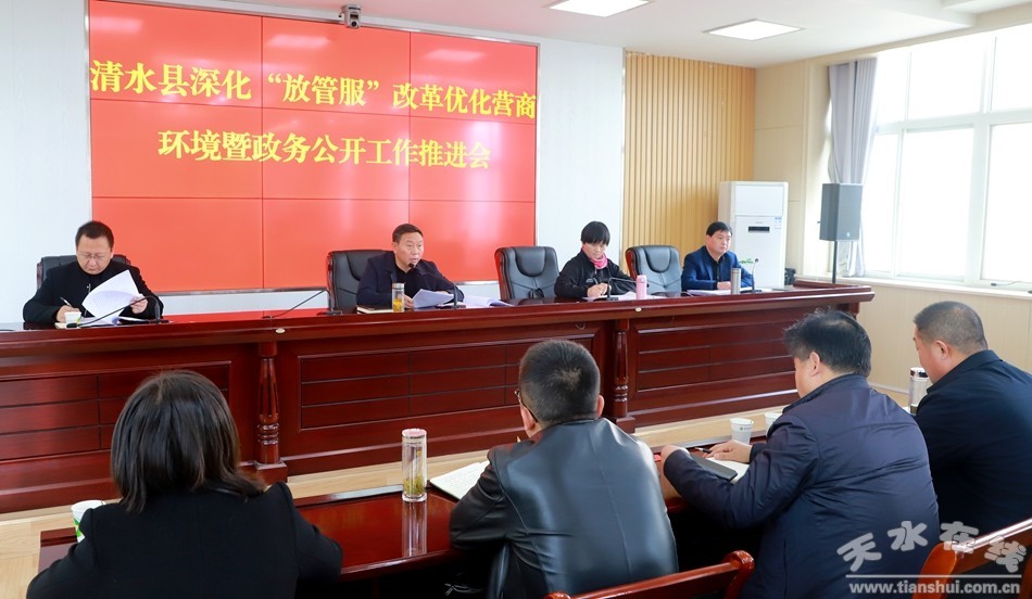 為全面貫徹落實全省“放管服”改革工作會議精神,加快推進清水縣“接放管服”改革和政務公開工作。在會議結束后,清水縣召開深化“接放管服”改革暨政務公開工作推進會議,安排部署下一階段重點工作。