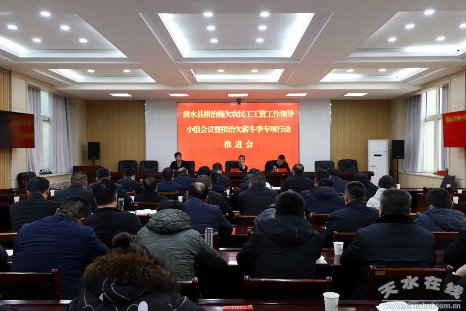 為深入貫徹落實(shí)國(guó)務(wù)院、省政府、市政府根治欠薪冬季工作會(huì)議精神,切實(shí)維護(hù)農(nóng)民工合法權(quán)益,12月22日下午,清水縣召開根治拖欠農(nóng)民工工資工作領(lǐng)導(dǎo)小組會(huì)議暨根治欠薪冬季專項(xiàng)行動(dòng)推進(jìn)會(huì)議?h委常委、政法委書記王懷珍,縣委常委、副縣長(zhǎng)、縣政府根治拖欠農(nóng)民工工資工作領(lǐng)導(dǎo)小組組長(zhǎng)馬創(chuàng)成出席會(huì)議。