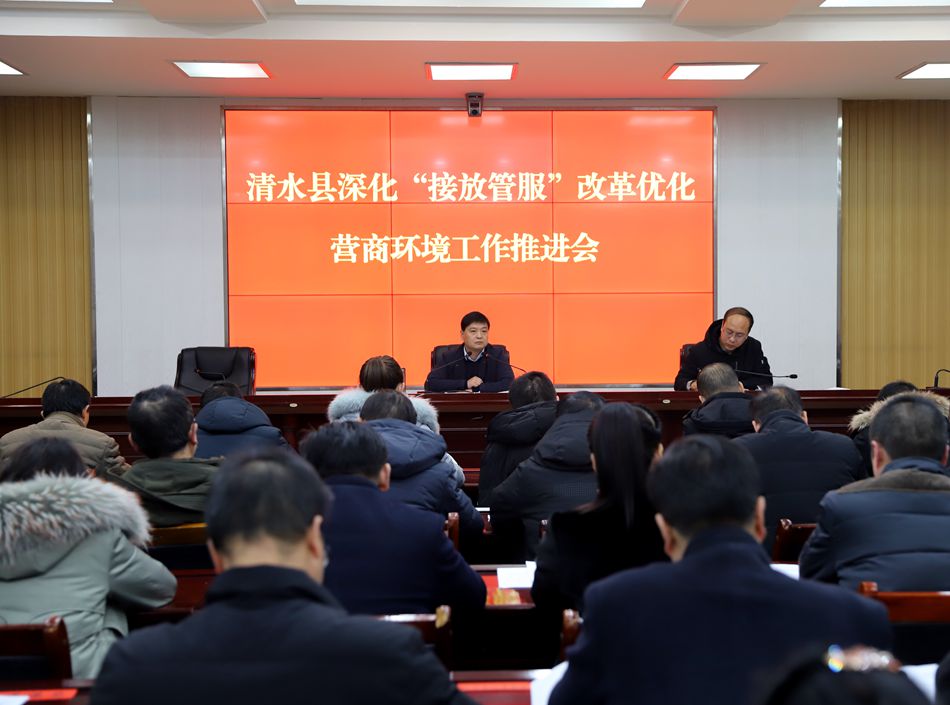 12月23日,清水縣召開深化“接放管服”改革工作推進(jìn)會(huì),副縣長(zhǎng)裴亮亮出席會(huì)議并講話?h“接放管服”改革領(lǐng)導(dǎo)小組成員單位負(fù)責(zé)同志和18鄉(xiāng)鎮(zhèn)分管領(lǐng)導(dǎo)共計(jì)50人參加會(huì)議。