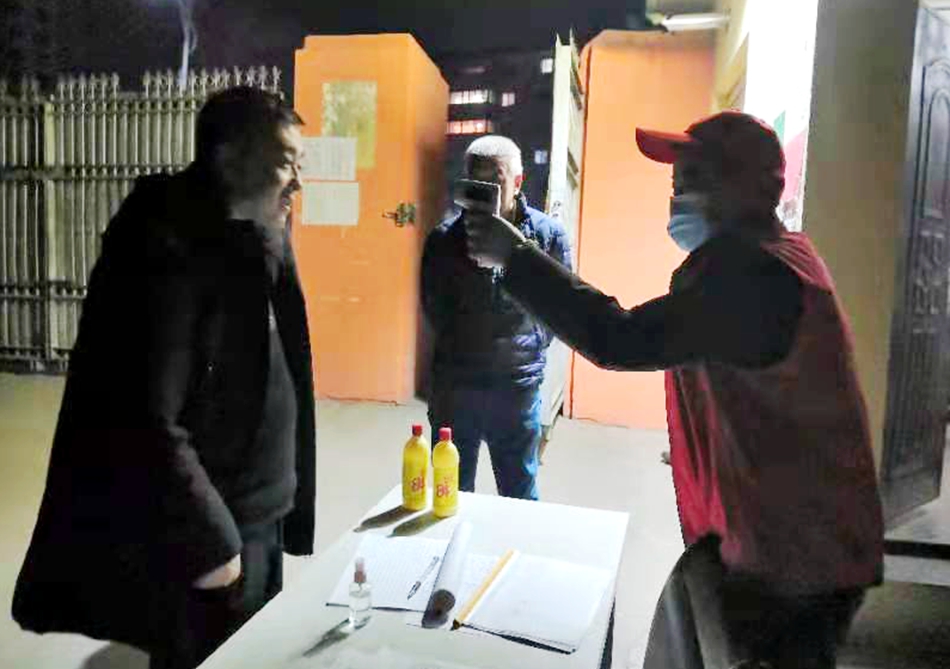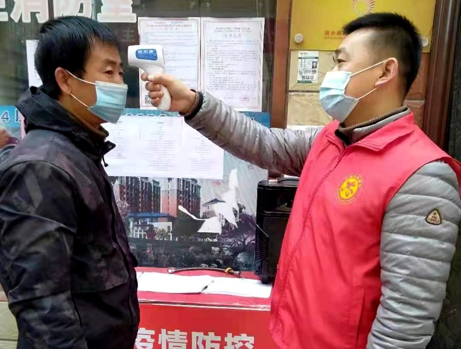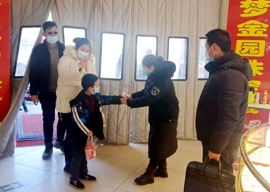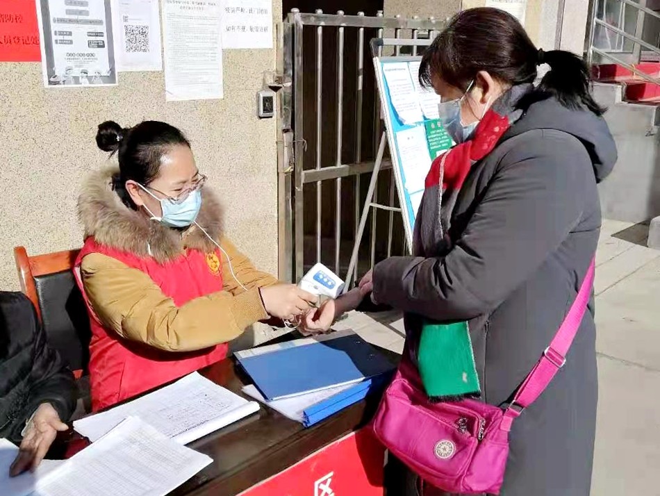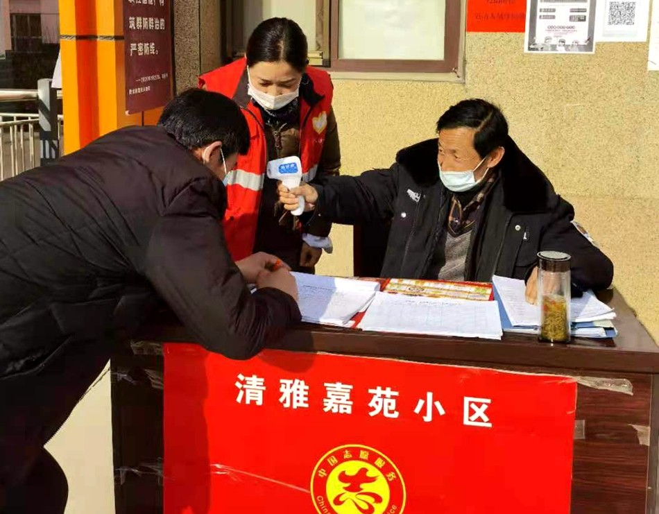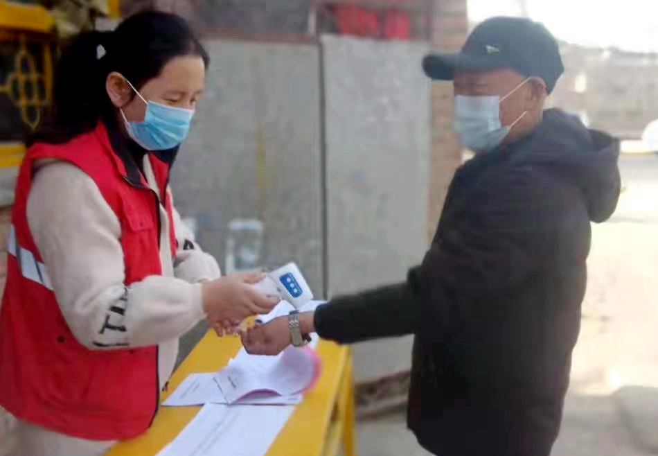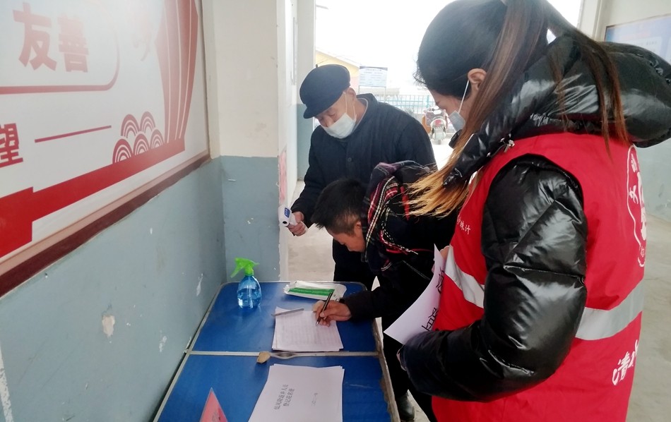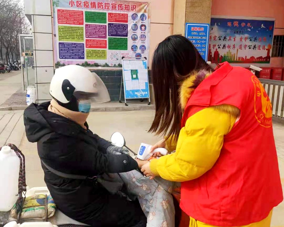 在各小區(qū)出入口的疫情防控檢測點,志愿者在做好防疫知識宣傳的同時,為群眾測量體溫,給出入小區(qū)人員進行消毒,認真記錄來訪人員的體溫、姓名、電話號碼、地址等重要信息。同時,通過發(fā)微信、發(fā)短信、打電話等方式,提醒在外務工人員不要返鄉(xiāng),樹立風險防范意識,提倡網絡拜年,并告知當前宋集鎮(zhèn)疫情防控的相關政策。