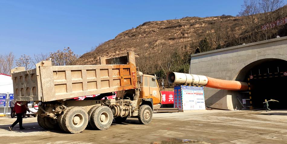 2月23日,天莊高速中鐵十七局標(biāo)段施工現(xiàn)場,數(shù)個機(jī)械車輛來回卸貨 ,施工人員正在緊張作業(yè)!爸需F十七局承建的天莊高速戴家山隧道是全縣第三長隧道,全長是3739米,因?yàn)楣て诒容^緊,施工任務(wù)比較重,我們的任務(wù)是今年年底,隧道必須全線貫通,我們自春節(jié)以后初七項(xiàng)目管理人員就全部到場,初十戴家山隧道已經(jīng)全面復(fù)工,施工人員到場現(xiàn)在是120余人,為了確保年底隧道貫通的目標(biāo),現(xiàn)在是項(xiàng)目部和勞務(wù)部進(jìn)入全部復(fù)工狀態(tài),爭取完成任務(wù)。 中鐵十七局天莊高速5標(biāo)二分部總工程師楊東海介紹。