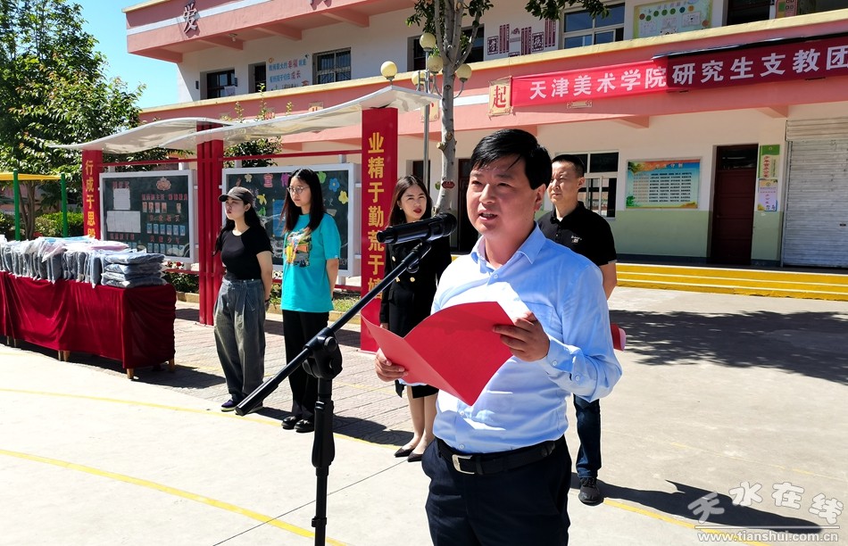 隨后,副縣長裴亮亮與天津美術(shù)學(xué)院師生前往白沙鎮(zhèn)中心小學(xué)開展向貧困學(xué)生捐贈(zèng)夏季衣服活動(dòng)。
