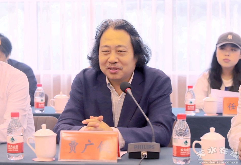 天津美院院長賈廣健,天津美院中國畫學(xué)院教授喻建十、劉文生、魏云飛、李云濤,清水縣四大組織領(lǐng)導(dǎo)馬越垠、李菊霞、周偉東、丁旺喜、李建勇、裴亮亮出席座談會;天津美院支教教師、清水縣有關(guān)部門負(fù)責(zé)人參加座談會。