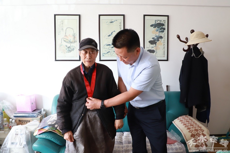 丁旺喜隨后來(lái)到位于永清鎮(zhèn)中山華庭的老黨員何新維的家中,為他佩戴了“光榮在黨50年”紀(jì)念章,并給他送去了慰問(wèn)品和慰問(wèn)金,感謝他為黨和人民的事業(yè)做出的貢獻(xiàn)。