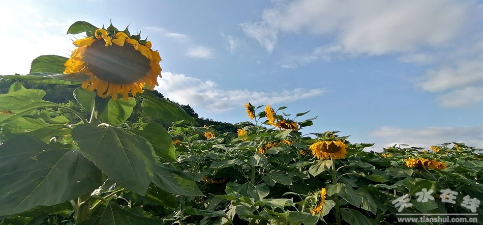 盛夏七月,清水縣千畝菊花園向日葵花田進(jìn)入盛花期。走進(jìn)千畝菊花園向日葵種植點(diǎn),朵朵向日葵競相綻放。在藍(lán)天白云下,金黃艷麗的向日葵與翠綠的群山相映生輝,朵朵金燦燦的花盤迎風(fēng)搖曳,高低錯(cuò)落,蜂在花間舞,人在花里游,盡顯夏日無限活力。