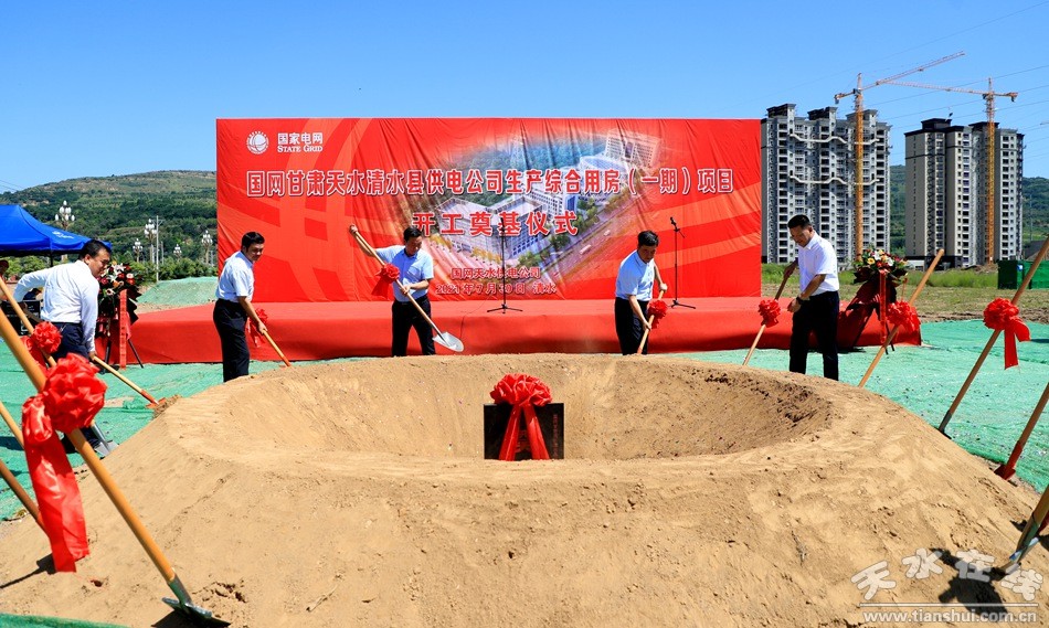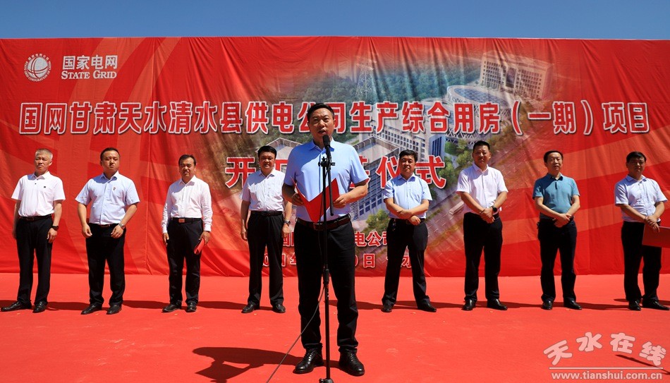 國(guó)網(wǎng)清水縣供電公司生產(chǎn)綜合樓項(xiàng)目開(kāi)工奠基儀式7月30日上午舉行,清水縣委書(shū)記馬越垠宣布項(xiàng)目開(kāi)工。