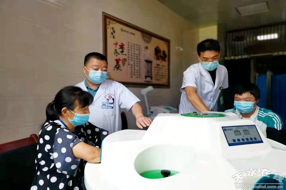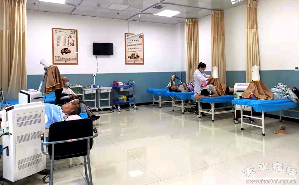 來到清水縣人民醫(yī)院中醫(yī)養(yǎng)生館,物理康復(fù)室、冬病夏治室、蠟療室、艾灸室、養(yǎng)生館等科室各具特色、功能齊全。在冬病夏治室內(nèi),醫(yī)師正在根據(jù)患者的病情調(diào)配三伏貼,有不少患者在排隊(duì)等候理療。