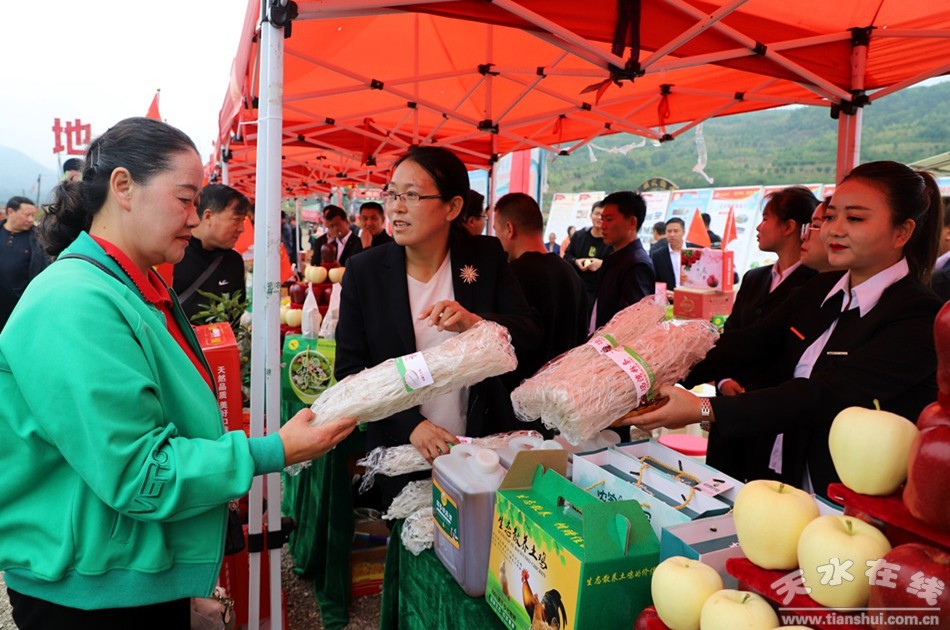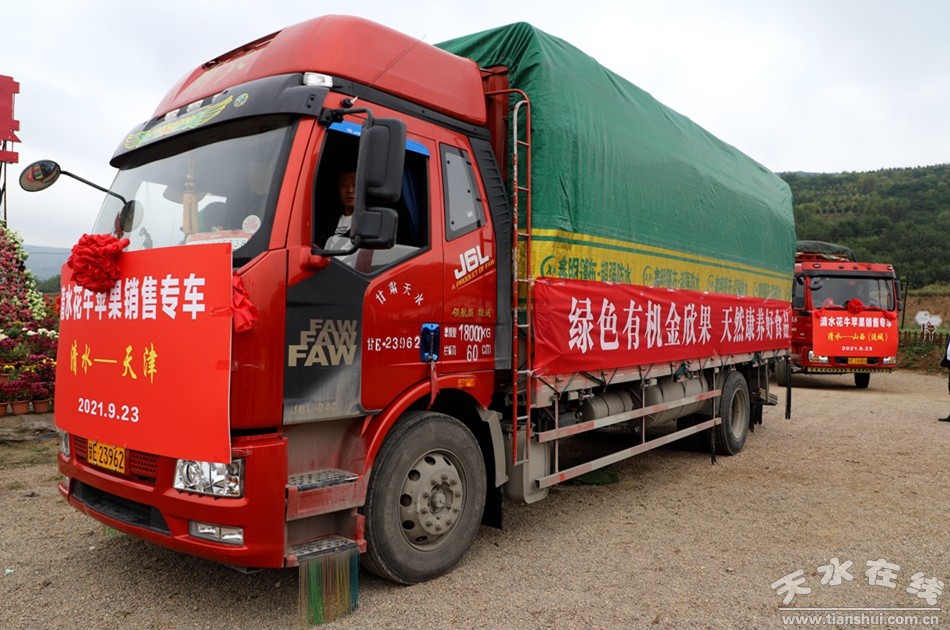 當(dāng)天,由清水縣金欣果等專業(yè)作社生產(chǎn)的特色農(nóng)產(chǎn)品發(fā)車運往全國各地。