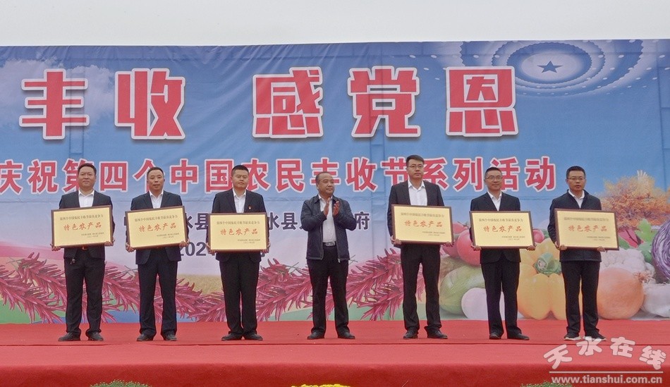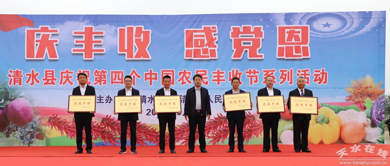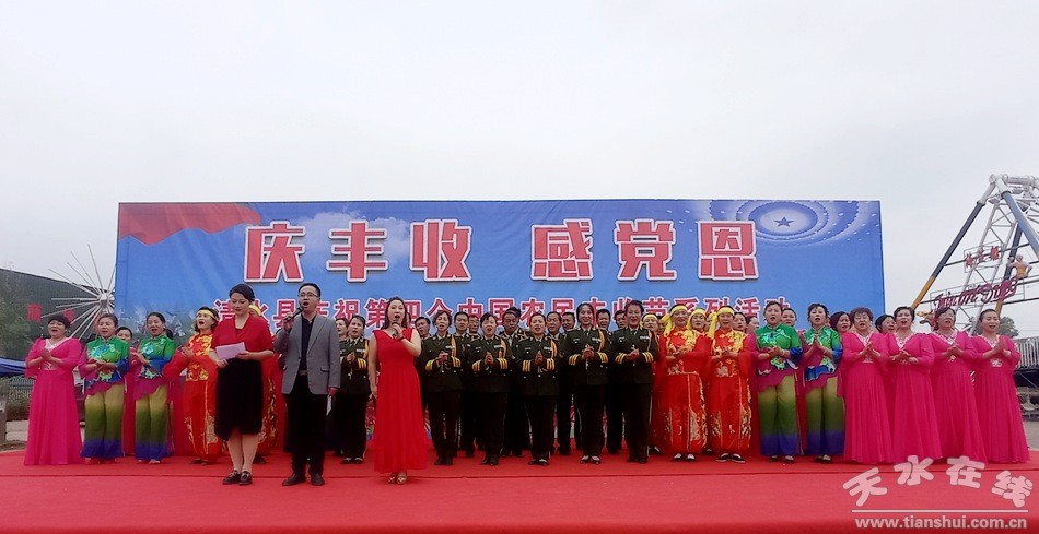 縣委副書記張龍宣布清水縣慶祝第四屆中國農(nóng)民豐收節(jié)慶;顒诱介_始,慶;顒臃珠_幕式、現(xiàn)場推介、節(jié)目匯演三個部分。
