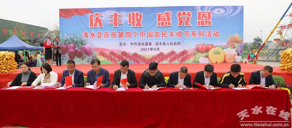 甘肅笙鮮農(nóng)業(yè)發(fā)展有限公司、天宇惠甘(天津)商貿(mào)有限公司、上海雙原電子商務(wù)有限公司、北京物美超市、杭州微海貿(mào)易有限公司分別與清水縣旺林蘋果種植農(nóng)民專業(yè)合作社、清水縣金果果品種植農(nóng)民專業(yè)合作社、清水縣盛農(nóng)農(nóng)業(yè)產(chǎn)業(yè)發(fā)展有限公司簽訂清水縣農(nóng)特產(chǎn)品認購合同。