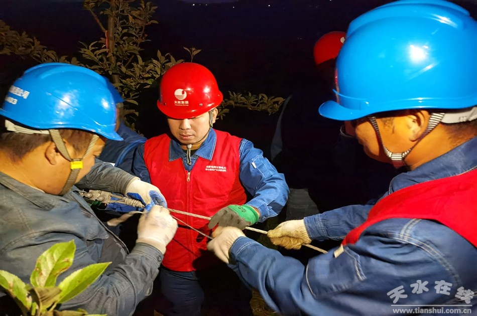 國(guó)網(wǎng)清水縣供電公司生產(chǎn)技術(shù)部主任靳升告訴記者,“我們今天的搶修任務(wù)是113山百線樊夏分支,這條線倒桿六基,現(xiàn)在正在對(duì)最后一基桿進(jìn)行糾正,砍伐了壓在線路上的樹枝70多棵,這一根桿子糾正完后,下一步我們要對(duì)王灣變壓器進(jìn)行糾正,并對(duì)沿路壓倒的電桿進(jìn)行糾正,任務(wù)完成以后,爭(zhēng)取晚上八點(diǎn)之前給樊夏村的5個(gè)自然村和秦亭村12個(gè)自然村全部恢復(fù)供電”。