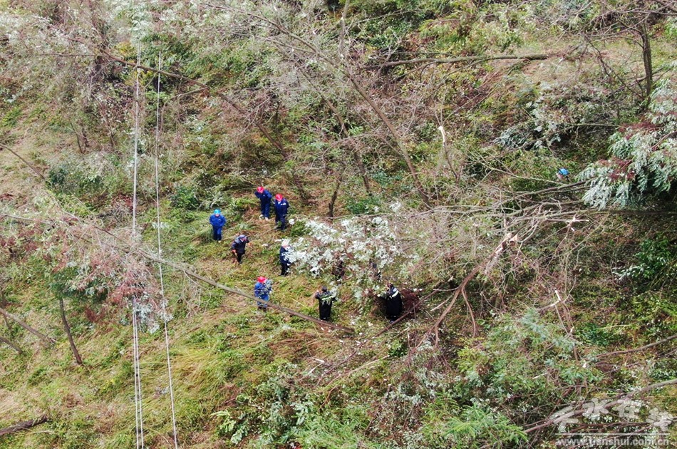 “清水的這次雪災(zāi),受災(zāi)非常嚴(yán)重,目前,我們調(diào)集了周邊縣區(qū)的甘谷、秦州、秦安、張川300多人,配合清水自身力量500人前往搶救現(xiàn)場(chǎng)。17個(gè)鄉(xiāng)鎮(zhèn)的基本供電已恢復(fù)。現(xiàn)在,由于持續(xù)降雨,山高路陡,道路泥濘,倒伏樹木多,清障難度非常大,搶修物資運(yùn)送難度也比較大。下一步,我們將繼續(xù)全力以赴,發(fā)揚(yáng)連續(xù)作戰(zhàn)的精神,加強(qiáng)搶修清障力度,盡自己最大的努力供電保暢通。”國(guó)網(wǎng)天水供電公司副總經(jīng)理王飛行說。