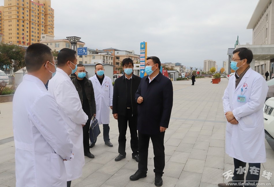 10月24日,清水縣委書記馬越垠先后深入縣醫(yī)院、縣中醫(yī)醫(yī)院、紅堡鎮(zhèn)蔡灣檢疫卡口、紅堡鎮(zhèn)蔡灣村執(zhí)勤點(diǎn)等重點(diǎn)場所檢查疫情防控工作,向連日來奮戰(zhàn)在抗疫一線的全縣醫(yī)護(hù)人員、公安干警、黨員干部以及卡點(diǎn)執(zhí)勤的工作人員、志愿者致以最崇高的敬意。他強(qiáng)調(diào),要大力弘揚(yáng)偉大抗疫精神,全面加強(qiáng)重點(diǎn)場所、重點(diǎn)人群、重點(diǎn)環(huán)節(jié)防控,嚴(yán)格落細(xì)落實(shí)疫情防控各項(xiàng)措施,堅(jiān)決打贏疫情防控保衛(wèi)戰(zhàn),全力守護(hù)人民群眾生命安全和身體健康。