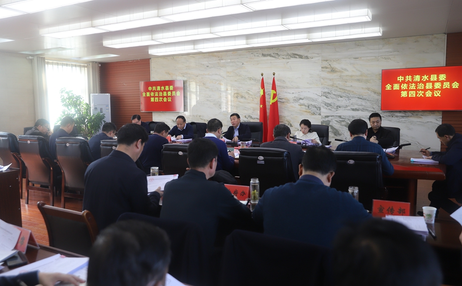 12月16日,清水縣委書記、縣委全面依法治縣委員會主任馬越垠主持召開縣委全面依法治縣委員會第四次會議,深入學(xué)習(xí)貫徹習(xí)近平法治思想,傳達學(xué)習(xí)習(xí)近平總書記在中央政治局第三十五次集體學(xué)習(xí)時的重要講話精神,省委全面依法治省委員會第七次會議、市委全面依法治市委員會第五次會議精神,審議通過《法治清水建設(shè)規(guī)劃(2021-2025年)》《清水縣法治政府建設(shè)實施方案(2021-2025年)》《清水縣法治社會建設(shè)實施方案(2021-2025年)》等6個文件,研究部署下一階段全面依法治縣工作。