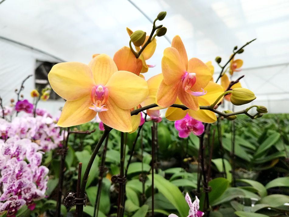 在蝴蝶蘭培育三區(qū),記者看到,蝴蝶蘭種類(lèi)繁多,有黃色、紫色、枚紅……嬌艷欲滴,賞心悅目。