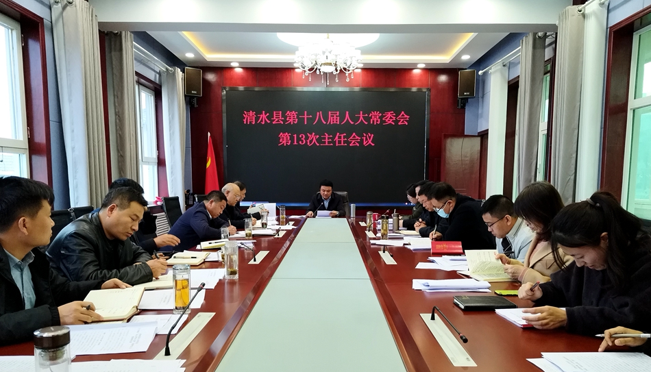 11月1日,清水縣第十八屆人大常委會召開第13次主任會議,縣人大常委會主任周偉東主持會議,副主任蔡友平、陳登峰、贠少靈、劉林平出席會議,縣人大各專委、常委會各工委,辦公室工作人員參加會議。