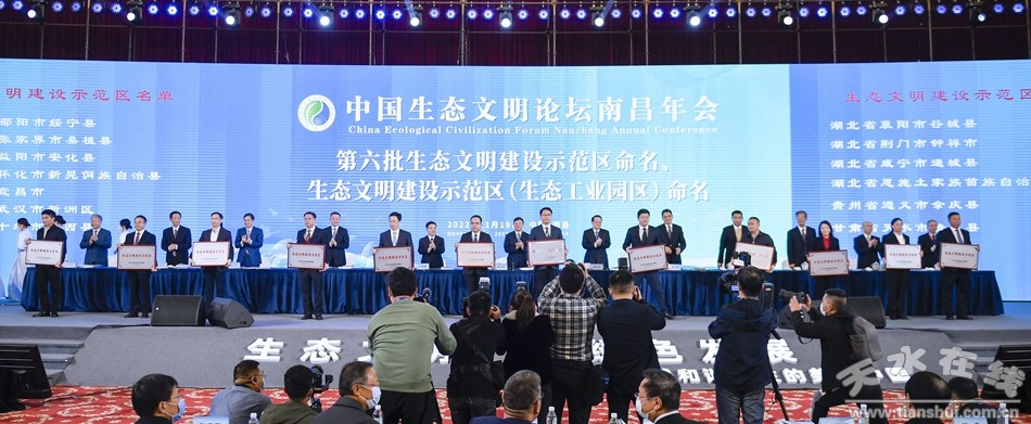 11月19日,中國生態(tài)文明論壇在江西省南昌市開幕。會議期間,生態(tài)環(huán)境部對第六批全國生態(tài)文明建設(shè)示范區(qū)及“綠水青山就是金山銀山”實踐創(chuàng)新基地進行命名表彰授牌,甘肅省清水縣榮獲第六批“國家生態(tài)文明建設(shè)示范區(qū)”稱號,縣委書記馬越垠代表清水縣領(lǐng)取榮譽牌匾。