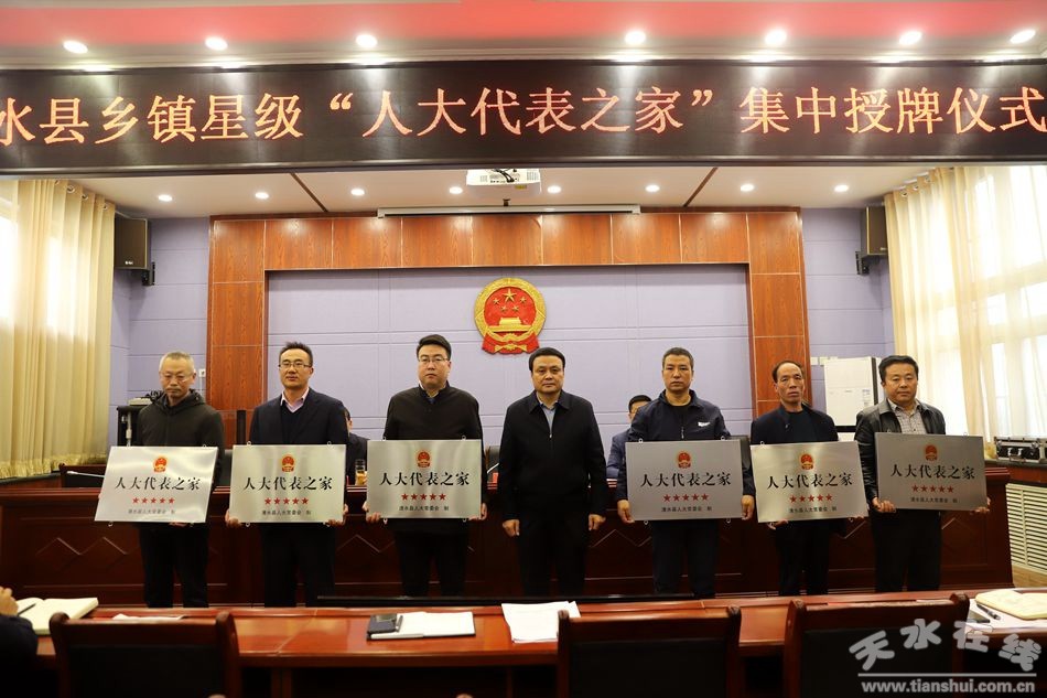 11月18日,清水縣人大常委會舉行鄉(xiāng)鎮(zhèn)星級“人大代表之家”集中授牌儀式,為五星級的11個“人大代表之家”、四星級的22個“人大代表之家”進行集中授牌?h人大常委會主任周偉東、副主任蔡友平、陳登峰、贠少靈、劉林平出席授牌儀式。