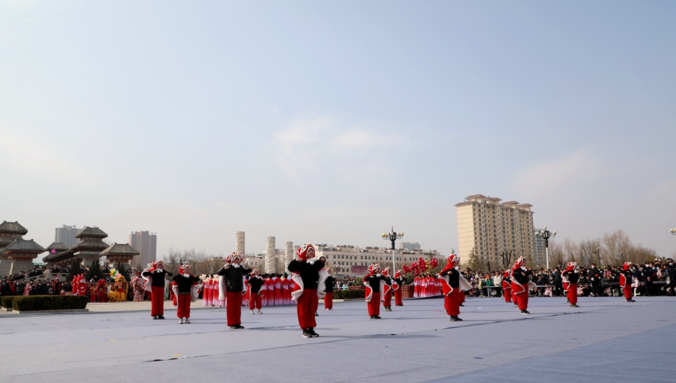 火紅的腰鼓、熱鬧的秧歌、精彩的舞獅、喜慶的舞蹈、獨(dú)具特色的旱船、花團(tuán)錦簇的馬社火輪番上演,為全縣人民送上一道豐盛的元宵文化“大餐”。