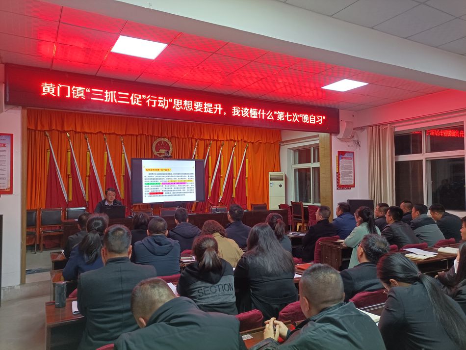 “三抓三促”行動開展以來,黃門鎮(zhèn)結(jié)合鎮(zhèn)情實際,探索每周兩個“晚自習(xí)”,堅持黨委會議第一議題集中學(xué)習(xí)、“三會一課”黨內(nèi)政治生活集中學(xué)習(xí)、干部職工周一例會集中學(xué)習(xí)“三學(xué)”模式,做到結(jié)合警示教育、領(lǐng)誦領(lǐng)學(xué)、業(yè)務(wù)解讀、問題通報促提升“四個結(jié)合”,全面提升干部職工履職能力和為民服務(wù)水平,在全鎮(zhèn)上下形成了比學(xué)趕超、大抓落實、爭先進位的良好氛圍。