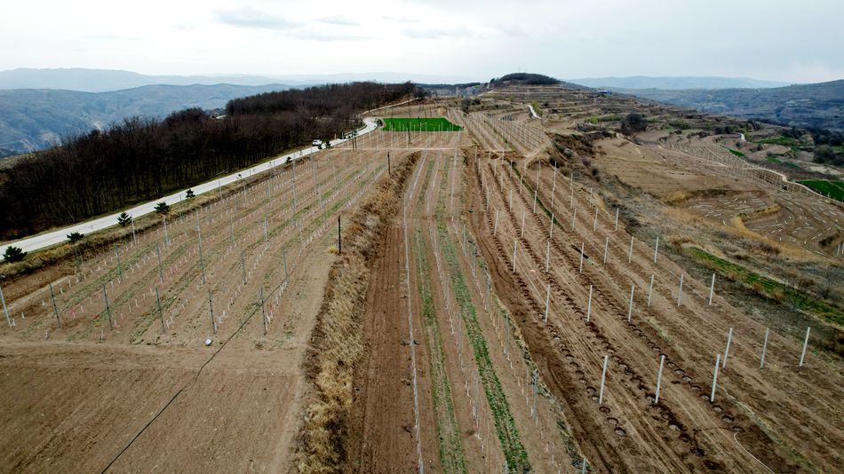 果農(nóng)們正在建設(shè)的這個(gè)果園與傳統(tǒng)果園不同,果園內(nèi)整齊豎立的水泥柱準(zhǔn)確地區(qū)分出行、行列,新栽的果樹每行的間距只有1.3米,遠(yuǎn)遠(yuǎn)小于喬化果園的間距,每畝地要栽植125棵樹,也遠(yuǎn)遠(yuǎn)高于喬化果園每畝的45棵樹,這就是近年來清水縣正在推行的矮砧密植模式。
