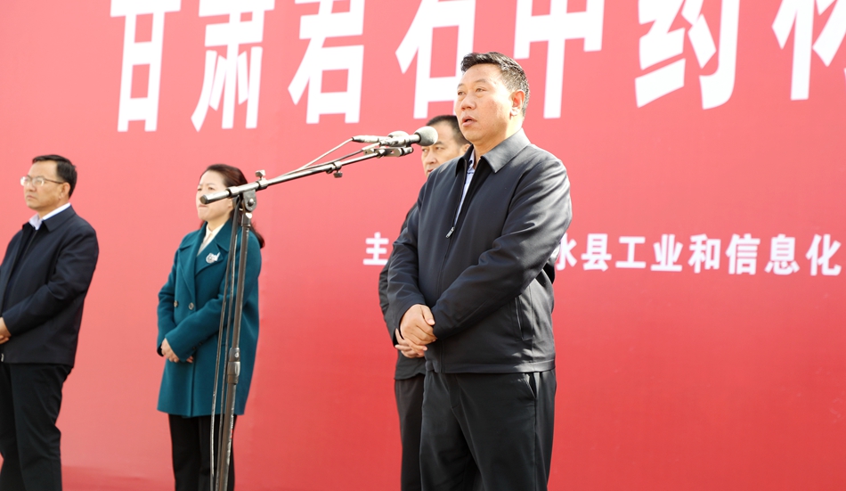 市政協(xié)副主席、清水縣委書(shū)記馬越垠宣布項(xiàng)目開(kāi)工?h委副書(shū)記、縣長(zhǎng)李菊霞致辭,甘肅君石中藥材開(kāi)發(fā)有限公司董事長(zhǎng)代擁軍、總經(jīng)理侯慶波以及丁旺喜、蔡俊杰等縣領(lǐng)導(dǎo)出席儀式,縣委副書(shū)記高建平主持儀式。