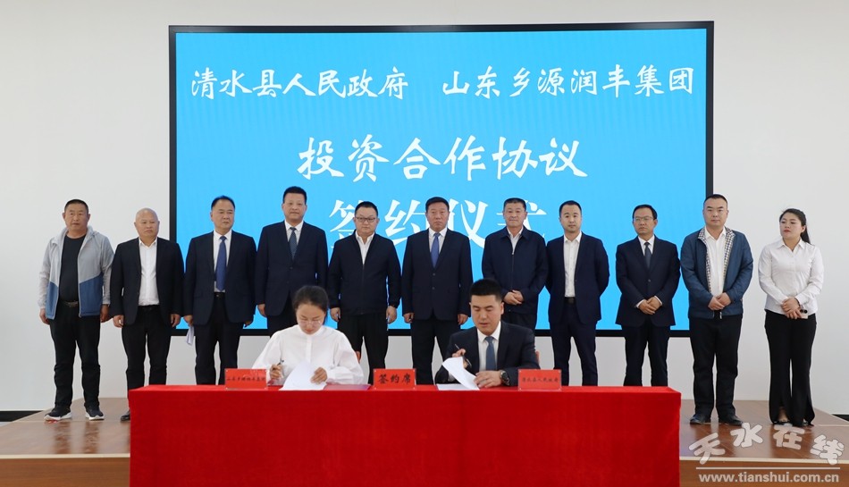 5月26日,清水縣人民政府與山東鄉(xiāng)源潤豐生態(tài)發(fā)展集團有限公司舉行合作項目簽約儀式,標志著雙方合作進入實質(zhì)性階段。市政協(xié)副主席、清水縣委書記馬越垠,山東鄉(xiāng)源潤豐生態(tài)發(fā)展集團有限公司董事長劉杰,縣領(lǐng)導(dǎo)丁旺喜、蔡俊杰等出席簽約儀式。