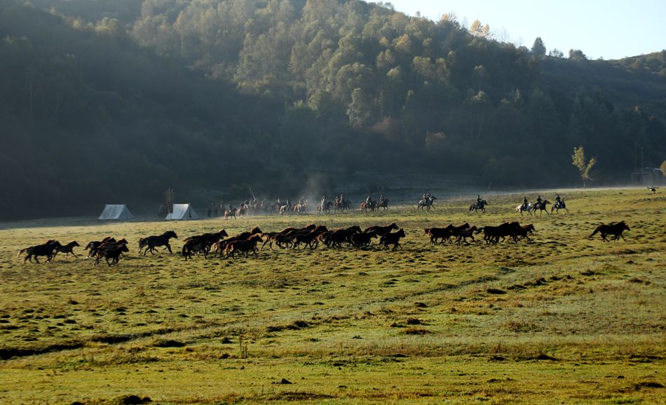 馮河草原又名非子牧場,是秦人先祖秦非子牧馬封邑之地。電影《天水之門》劇組正是被這里優(yōu)美的自然風(fēng)光和獨特的歷史文化所吸引,于是決定來此處取景拍攝。據(jù)工作人員介紹,此次他們將在馮河草原進(jìn)行為期兩天的取景拍攝,參演電影的30多名群眾演員、100多匹馬均來自本地。