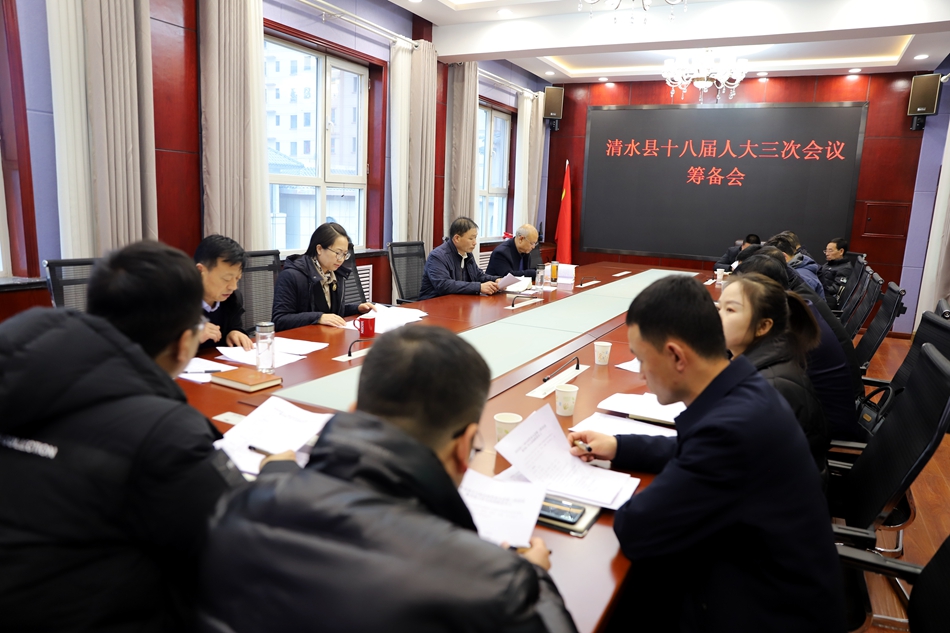 1月15日,清水縣第十八屆人民代表大會第三次會議籌備工作會議召開?h人大常委會副主任陳登峰、贠少靈、劉林平出席會議。