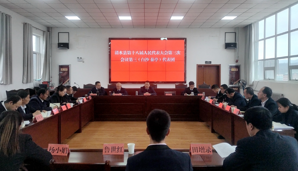 1月18日,清水縣人大常委會主任丁旺喜參加清水縣第十八屆人民代表大會第三次會議第三代表團分團審議,與代表們共同審議了政府工作報告,審查了計劃報告、預(yù)算報告,并認真聽取意見建議,共商清水發(fā)展良策?h人大常委會副主任劉林平參加審議。