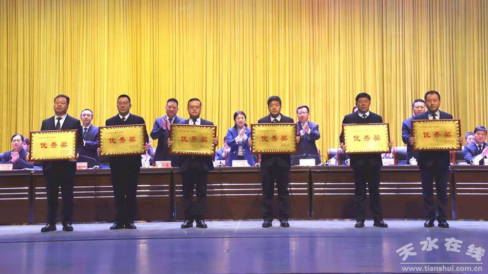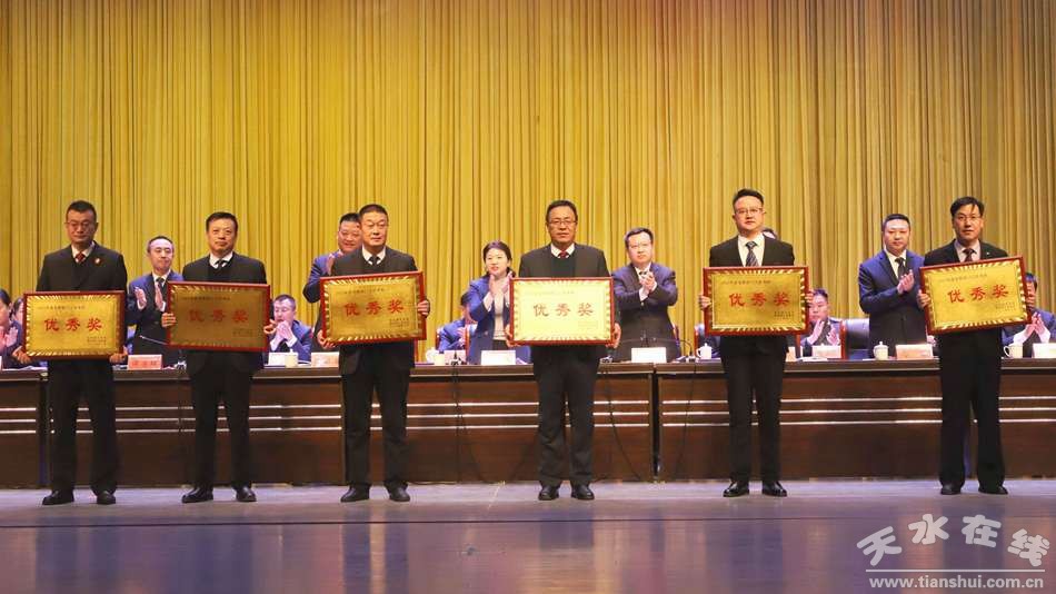 清水縣2023年度考核突出產(chǎn)業(yè)發(fā)展、項(xiàng)目建設(shè)、招商引資等高質(zhì)量發(fā)展重點(diǎn)任務(wù),對鄉(xiāng)鎮(zhèn)、部門工作進(jìn)行了綜合評價(jià),確定了考核優(yōu)秀獎(jiǎng)和各類單項(xiàng)獎(jiǎng)表彰范圍,并在會(huì)上進(jìn)行了表彰。紅堡鎮(zhèn)、永清鎮(zhèn)、黃門鎮(zhèn)、白駝鎮(zhèn)、王河鎮(zhèn)、郭川鎮(zhèn)獲得2023年度鄉(xiāng)鎮(zhèn)工作考核優(yōu)秀獎(jiǎng);發(fā)改局、住建局、財(cái)政局、水務(wù)局、教育局、農(nóng)業(yè)農(nóng)村局獲得2023年度政府部門工作考核優(yōu)秀獎(jiǎng),縣委組織部、宣傳部、人大辦、政協(xié)辦、法院、殘聯(lián)獲得2023年度黨群部門工作考核優(yōu)秀獎(jiǎng),清水縣招商中心、工業(yè)集中區(qū)管委會(huì)、融媒體中心、城鄉(xiāng)更新中心、水土保持站、綜合執(zhí)法局獲得2023年度政府直屬事業(yè)單位及部門管理事業(yè)單位工作考核優(yōu)秀獎(jiǎng)?h農(nóng)業(yè)農(nóng)村局等10個(gè)鄉(xiāng)鎮(zhèn)和部門被評為2023年度招商引資工作先進(jìn)單位;縣住建局等10個(gè)政府部門及管理單位被評為2023年度項(xiàng)目工作先進(jìn)單位;甘肅天河酒業(yè)有限公司等3家企業(yè)被評為2023年度重點(diǎn)納稅先進(jìn)企業(yè);郭川鎮(zhèn)趙那村等18個(gè)村被評為2023年度農(nóng)業(yè)產(chǎn)業(yè)建設(shè)先進(jìn)村。同時(shí),根據(jù)全縣經(jīng)濟(jì)社會(huì)發(fā)展貢獻(xiàn)度,對2023年度服務(wù)保障全縣中心工作駐縣單位、新時(shí)代文明實(shí)踐中心建設(shè)工作先進(jìn)單位,2023年度平安清水建設(shè)暨全縣主動(dòng)創(chuàng)穩(wěn)工作先進(jìn)鄉(xiāng)鎮(zhèn)、單位、村、社區(qū)、校園、企業(yè)、醫(yī)院進(jìn)行了表彰;會(huì)議還為2023年度縣級文明單位、文明村、文明社區(qū)、文明校園以及高新技術(shù)企業(yè)、省級科技創(chuàng)新企業(yè)進(jìn)行授牌。