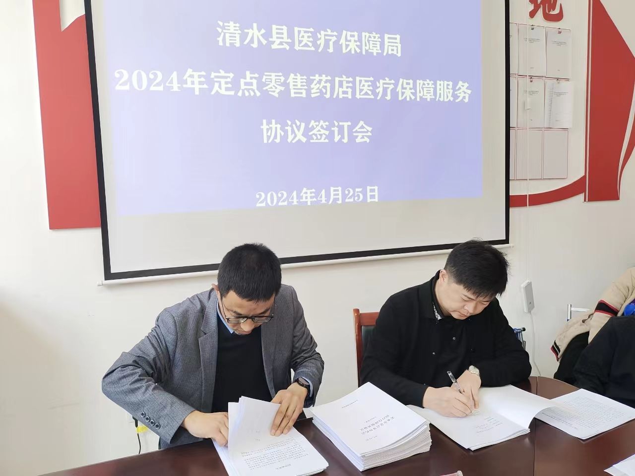 為進一步規(guī)范和加強定點醫(yī)藥機構管理,提高醫(yī);鹗褂眯,為參保群眾提供更優(yōu)質高效的醫(yī)保服務。4月24日,清水縣醫(yī)療保障局組織召開2024年定點醫(yī)藥機構醫(yī)療保障服務協(xié)議簽訂會。縣內(nèi)84家定點醫(yī)藥機構法定代表人、醫(yī)保局工作人員,共90余人參加會議。