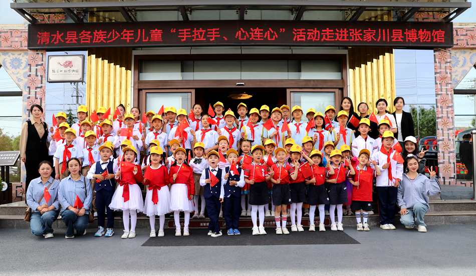 活動(dòng)中,清水縣56名各族少年兒童參觀了張家川縣鑄牢中華民族共同體意識(shí)館、馬家塬車輿博物館、圖書館和科技館,在張家川縣第三幼兒園和阿陽小學(xué)開展了“石榴籽一家親”手拉手、心連心主題聯(lián)誼活動(dòng),兩縣少年兒童互贈(zèng)禮物并開展結(jié)對(duì)認(rèn)親和民族歌舞表演,在互動(dòng)交流中增強(qiáng)少年兒童對(duì)偉大祖國、中華民族、中華文化、中國共產(chǎn)黨、中國特色社會(huì)主義的認(rèn)同。