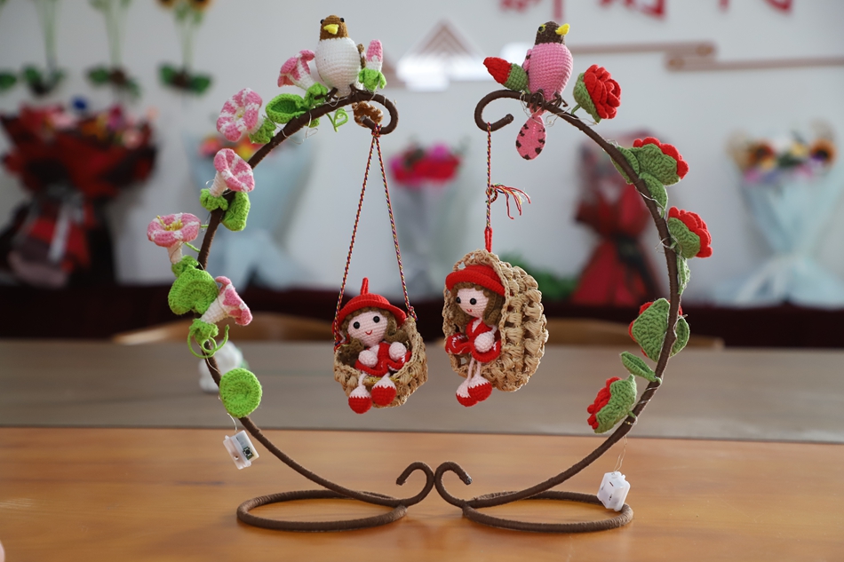 “手工編織時(shí)間自由、地點(diǎn)靈活,可以到合作社去編,也可以把線領(lǐng)回家編,既不耽誤干農(nóng)活,還可以為家里增加收入,我大概一天能編織7-8個(gè)小掛件,收入50-100元。”張連琴高興地說(shuō)。