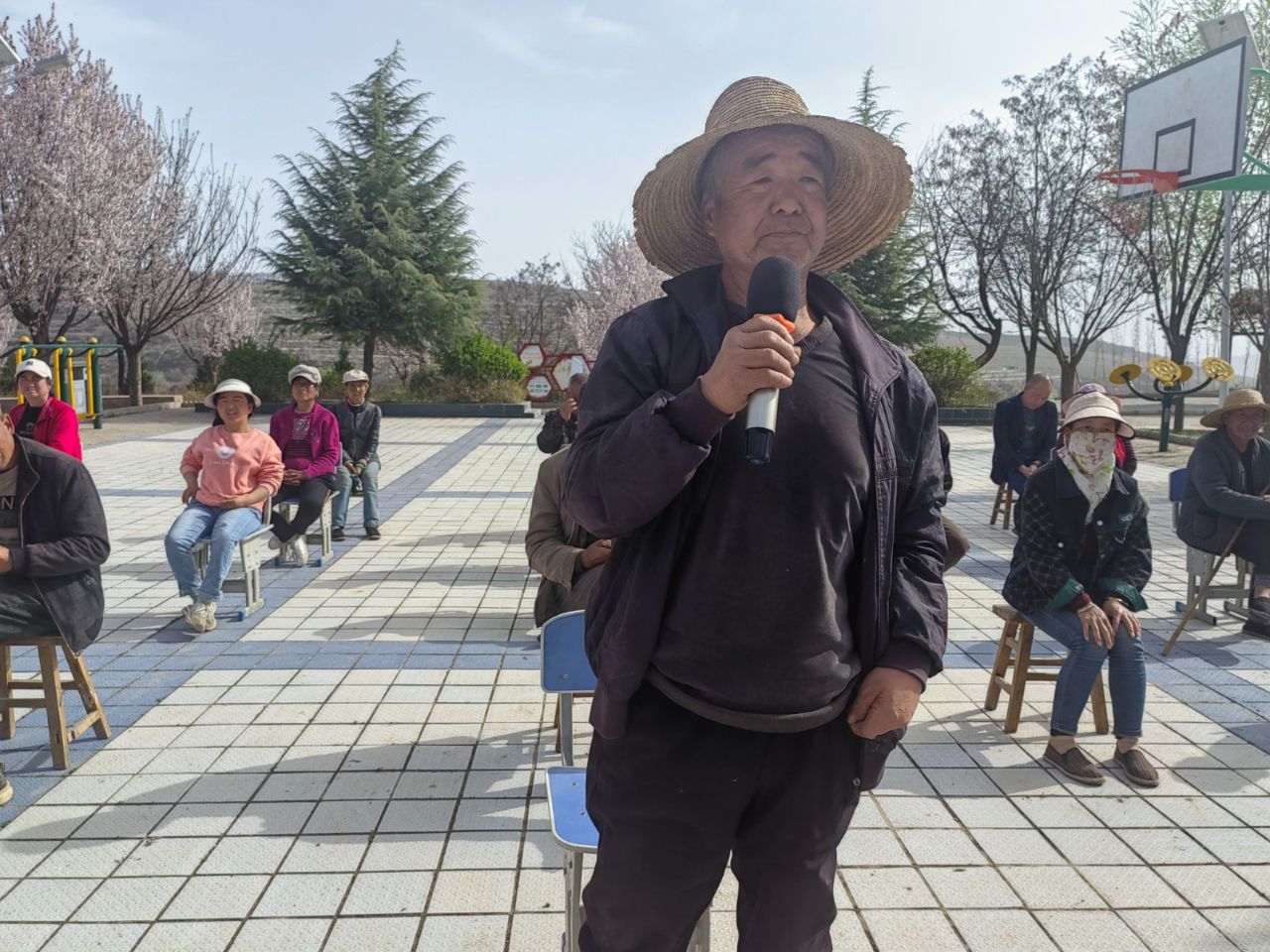 實(shí)績說話,用成果彰顯擔(dān)當(dāng);顒右潦,由曹溝村駐村第一書記白旭斌及駐村工作隊(duì)員鄭金虎、薛俊峰3人分別對自己在“四百”主題活動開展以來為群眾辦理的實(shí)事,解決的實(shí)際困難進(jìn)行了匯報(bào)闡述,分享了近期幫辦實(shí)事的典型案例。在“四百”主題行動走訪中,駐村工作隊(duì)員了解到曹溝村二組村民希望在楊溝自然村的晾曬場內(nèi)安裝一些健身器材,從而方便村里的老年人以及孩子鍛煉身體的訴求,及時進(jìn)行了上報(bào)并與市體育局積極進(jìn)行了溝通銜接,于2025年2月在楊溝晾曬場以及廣場安裝了籃球架2套,乒乓球桌2張,以及各類健身器材7套,進(jìn)一步有效改善了群眾的精神文化水平,有效解決了群眾的實(shí)際困難,這一案例讓現(xiàn)場群眾切實(shí)感受到“四百”行動帶來的實(shí)惠,也對后續(xù)問題解決充滿期待。