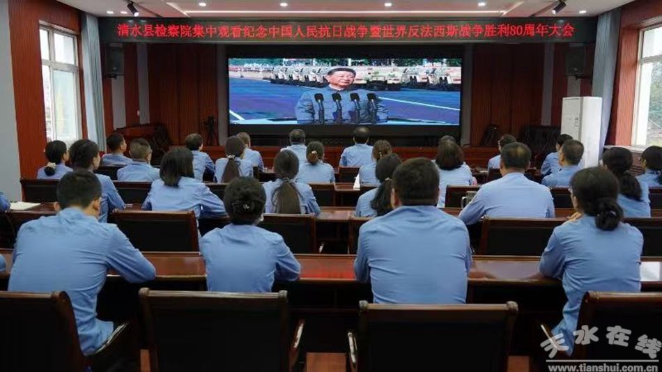 9月3日上午,紀念中國人民抗日戰(zhàn)爭暨世界反法西斯戰(zhàn)爭勝利80周年大會在北京天安門廣場隆重舉行,以盛大閱兵儀式,同世界人民一道紀念這個偉大的日子。清水縣干部群眾通過廣播、電視、報紙、新媒體等多種方式收聽收看了大會直播視頻和閱兵盛況。