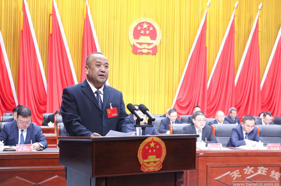 縣人大常委會主任馬小平受清水縣第十八屆人民代表大會常務(wù)委員會委托向大會作工作報告。