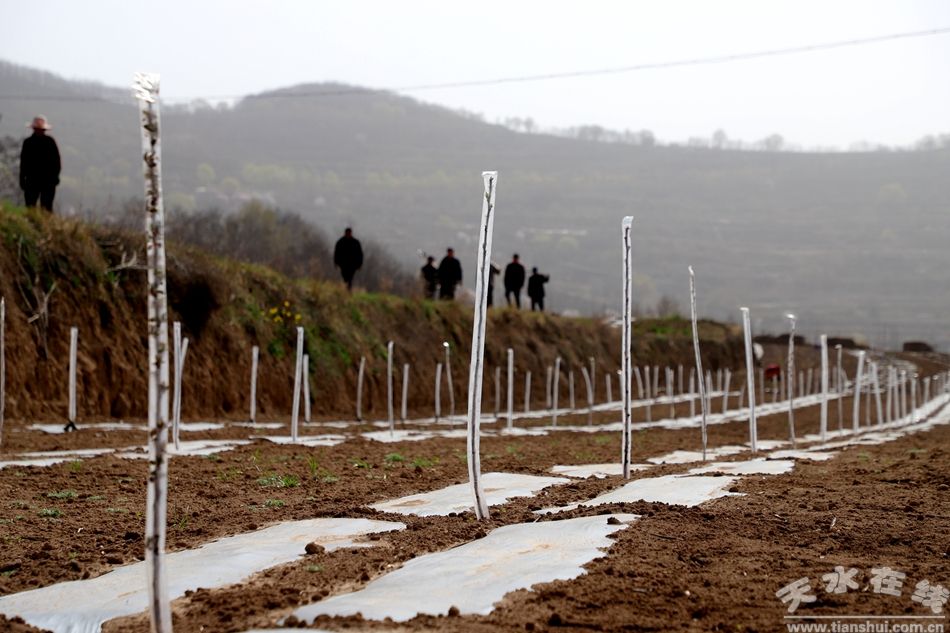 在遠(yuǎn)門鎮(zhèn)各村改造現(xiàn)場(chǎng),耕地機(jī)轟鳴作業(yè),農(nóng)戶們分工協(xié)作,整平土地、鋪設(shè)黑色地膜、開挖定植坑、栽植優(yōu)質(zhì)蘋果苗木,每一道工序都有條不紊、規(guī)范有序。地膜沿樹行整齊鋪開,四周用細(xì)土壓實(shí),既保水增溫、抑制雜草,又能減少病蟲害發(fā)生。新栽植的“花!薄案皇俊钡葍(yōu)質(zhì)蘋果苗整齊排列,在春風(fēng)中孕育著豐收的希望。