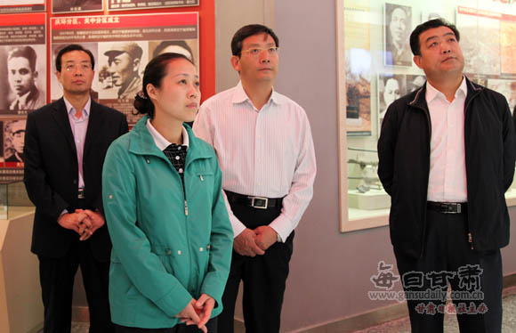 每日甘肅網(wǎng)慶陽(yáng)訊(記者 苗文莉) 2011年9月14日,甘肅省副省長(zhǎng)、慶陽(yáng)市委書(shū)記張曉蘭上任伊始,就前往華池縣,瞻仰南梁革命紀(jì)念館,重溫革命歷史,緬懷革命先烈,并看望慰問(wèn)老紅軍。