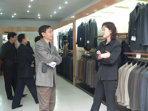 圖(左)為天水蘭天公司副總劉曉武參觀羅蒙西服專賣店
