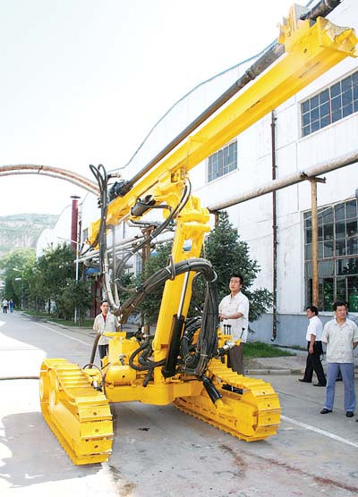 7月6日,風(fēng)動(dòng)機(jī)械有限公司的技術(shù)人員在向客戶演示TC308A露天潛孔鉆車(chē)性能。該產(chǎn)品是公司加大技術(shù)創(chuàng)新力度,提升企業(yè)產(chǎn)品競(jìng)爭(zhēng)能力的又一力作,日前在“中國(guó)工程機(jī)械十大新聞暨年度產(chǎn)品TOP50”評(píng)選活動(dòng)中脫穎而出,獲最高獎(jiǎng)。(贠武軍 堅(jiān)忠良 攝)