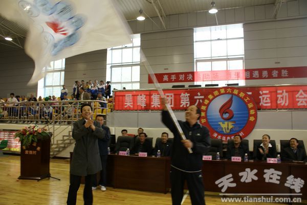 閉幕式于男籃比賽結(jié)束后在度假村籃球館內(nèi)舉行。閉幕式首先在文藝演出中展開:青春洋溢的韻律操,《幸福山歌》、《祖國你好》的女聲獨唱,《敬你一碗青稞酒》的曼妙舞蹈,《雪域男兒》、《歡樂海洋》的男聲獨唱,《來日方長》男聲獨唱,文藝演出為閉幕式增添了一抹亮彩。文藝演出完畢,裁判員、各代表團入場,他們帶著四日以來的戰(zhàn)績,展示著運動員的風(fēng)采與自信。隨即全場奏唱中華人民共和國國歌,然后本屆運動會副裁判長宣布了昊峰集團第六屆運動會的比賽成績:團體第一名是度假村代表團,第二名是集團機關(guān),第三名是綠島大酒店。
