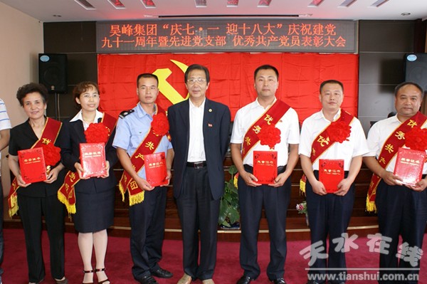 6月29日上午,以“慶七一、迎十八大”為主題的慶祝建黨91周年總結(jié)表彰大會及系列慶祝活動在昊峰集團(tuán)公司會議室隆重舉行。