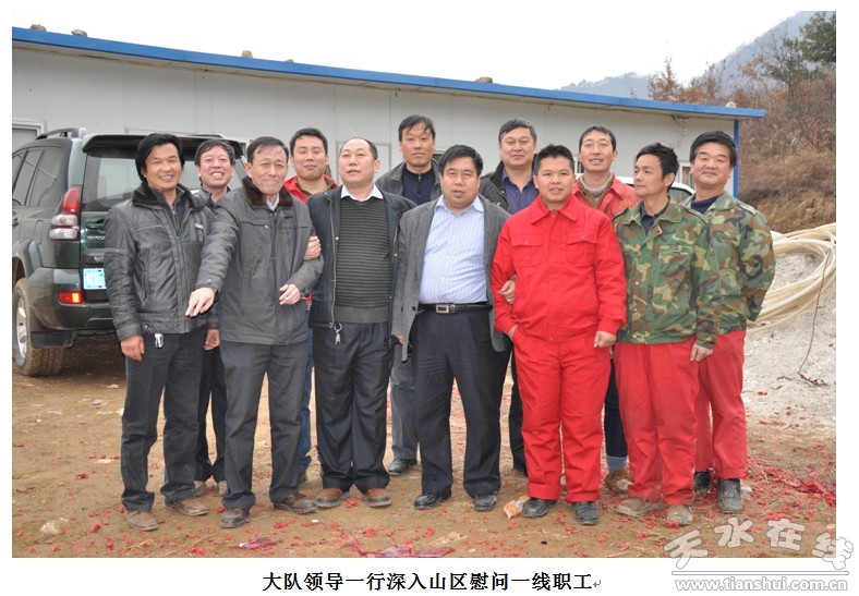 新春佳節(jié),多數(shù)人都幸福地和家人歡聚一堂,共享天倫之樂,而核地質(zhì)213大隊(duì)鉆探公司一號(hào)機(jī)組和地礦公司三分隊(duì)的同志們,依然奮戰(zhàn)在野外一線,這種舍小家而顧大家的忘我精神牽動(dòng)著大隊(duì)領(lǐng)導(dǎo)的心。2月10日(正月初一)一早,大隊(duì)長(zhǎng)王正堂、大隊(duì)黨委副書記王海軍、副大隊(duì)長(zhǎng)孫明等同志在相關(guān)科室負(fù)責(zé)人的陪同下深入徽縣山區(qū),看望慰問春節(jié)期間仍堅(jiān)持在此工作的干部職工,向他們送去慰問品、慰問金,并致以節(jié)日的問候和祝福。