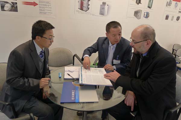 展會(huì)期間,有來(lái)自美國(guó)、德國(guó)、意大利、比利時(shí)、韓國(guó)、黎巴嫩、印度、土耳其、突尼斯、泰國(guó)、馬耳他、巴西、烏克蘭、克羅地亞等55家客商到展位進(jìn)行了咨詢及合作洽談, 約有350人次參觀公司展位。