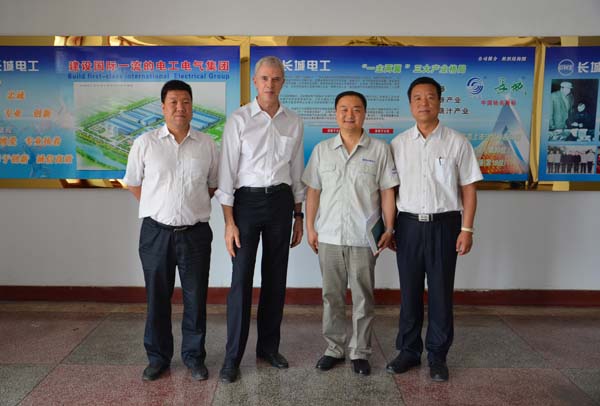 公司總工程師張建成和長城電工電力裝備公司總經理石立峰陪同客人參觀了長城電工長開廠公司、二一三公司、天傳所公司和產業(yè)園。