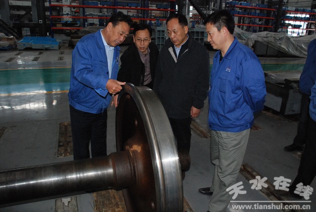 11月8日,甘肅省國資委主任馬艾武一行數(shù)人,在天水市國資委有關部門領導的陪同下來工業(yè)園生產現(xiàn)場調研生產經營情況。星火機床公司黨委書記、副總經理王永革,常務副總經理劉勝接待并陪同參觀生產現(xiàn)場。
